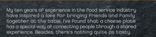 My name is Paige Handler, otherwise known as the Cheese Handler, and it’s my mission to spread joy through cheese.  Whether it’s soupy, fresh, semi-hard, crumbly, (or) has a wash rind (and) stinks really bad, I just can’t get enough.     For many people, the world of cheese can be a big and confusing place. (something in here to connect) Let me handpick the finest cheeses for you. (something here) I am committed to bringing the most unique and delicious cheeses and accompaniments to your gathering.     My ten years of experience in the food service industry has inspired (a) love for bringing friends and family together at the table.  I’ve found that a cheese plate has a special way of connecting people through a shared experience.  Besides, there’s nothing quite as tasty.     A Cheese Handler event is not just about the cheese; it’s about flavor, experience, education, hospitality, and of course, fun.  So, let’s have a party!